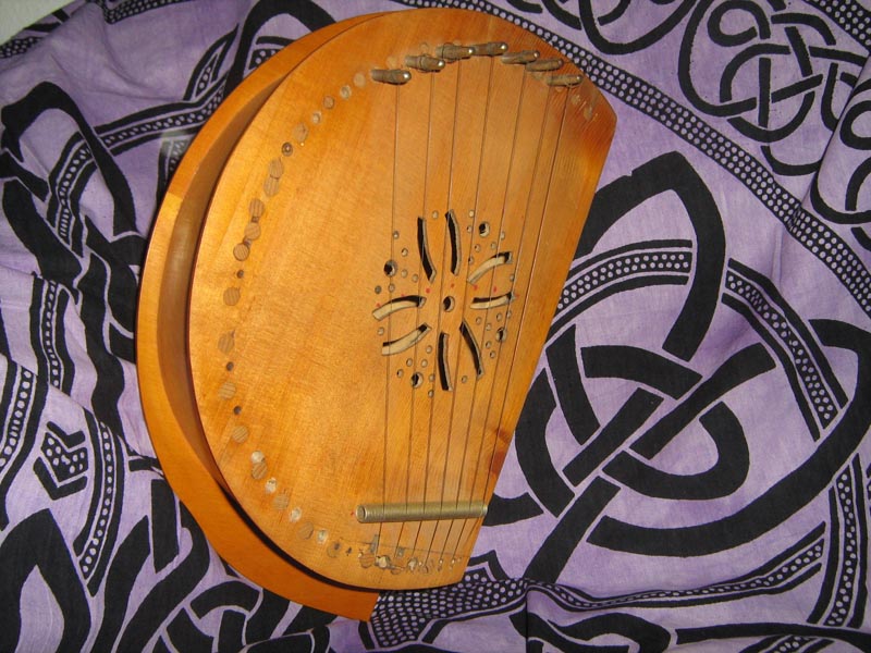 Anyway, we tried to build replicas of an instrument in the vault of the Landesmuseum Darmstadt (a treasure chamber once you get there where the public does not). So size and design follow an original musical instrument. But we never got the nails properly tuned, hammered in, what soever. As the acer body and the spruce top came from discards wood of a well acclaimed guitar maker the box, once glued together, sanded, coated with shellac, was not bad. Finally I pulled the nails, sealed the holes, drilled tiny holes for strings and converted it into a diatonic Tabletop-Harp/Kandele with Zither-tuning pegs. Pretty loud for the small size, produces nice flaegolet-sounds. About 15 Nagelgeigen were built in the eary 1980's, so don't try to go shopping for one; better build your own.